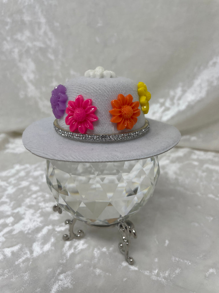 Adorn your furry friend with one of these adorable hats. Perfect for posing for fun photos! Every piece is unique. Hats are 4 inches across and include a string to hold the hats onto your pets head.