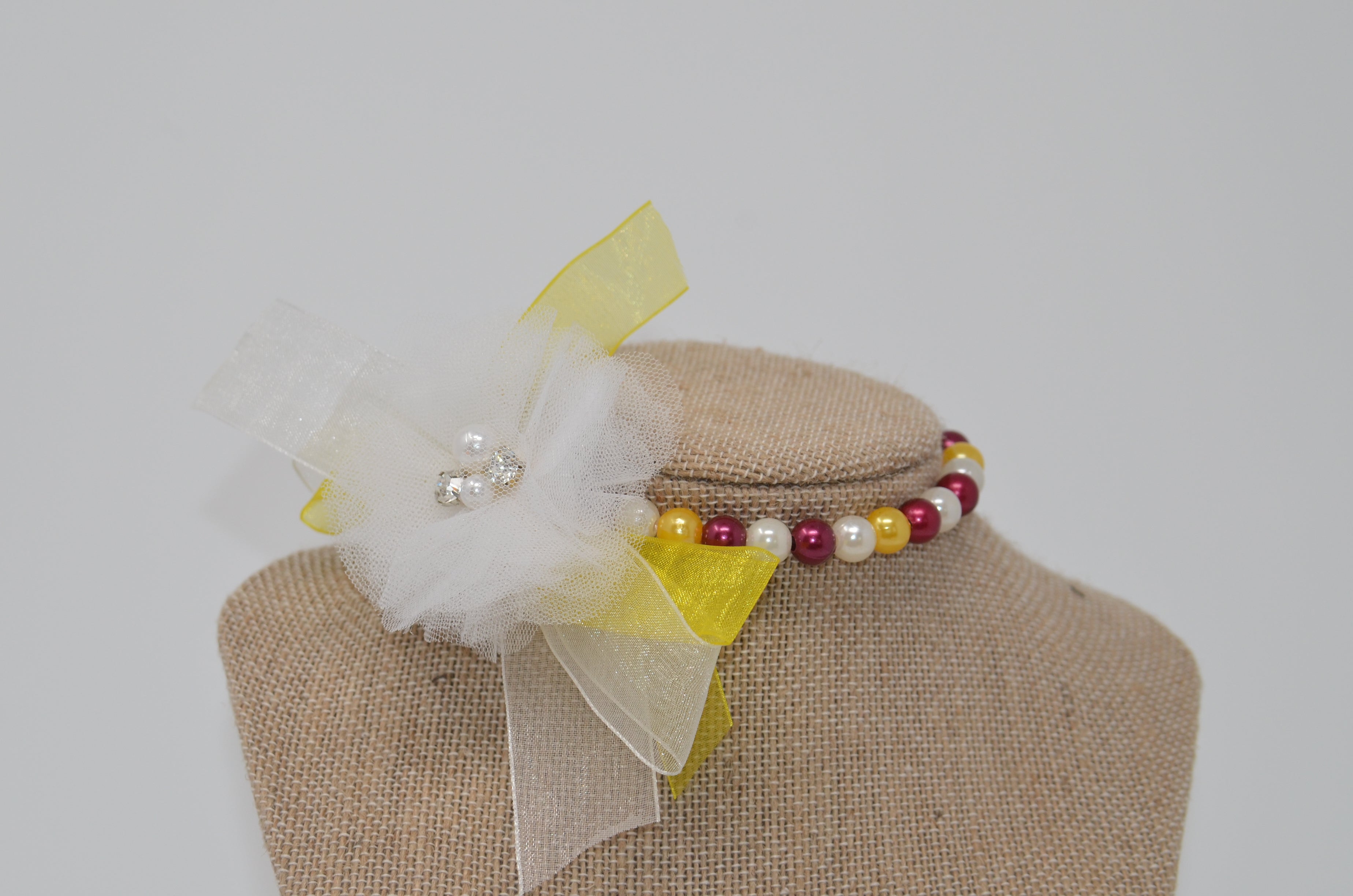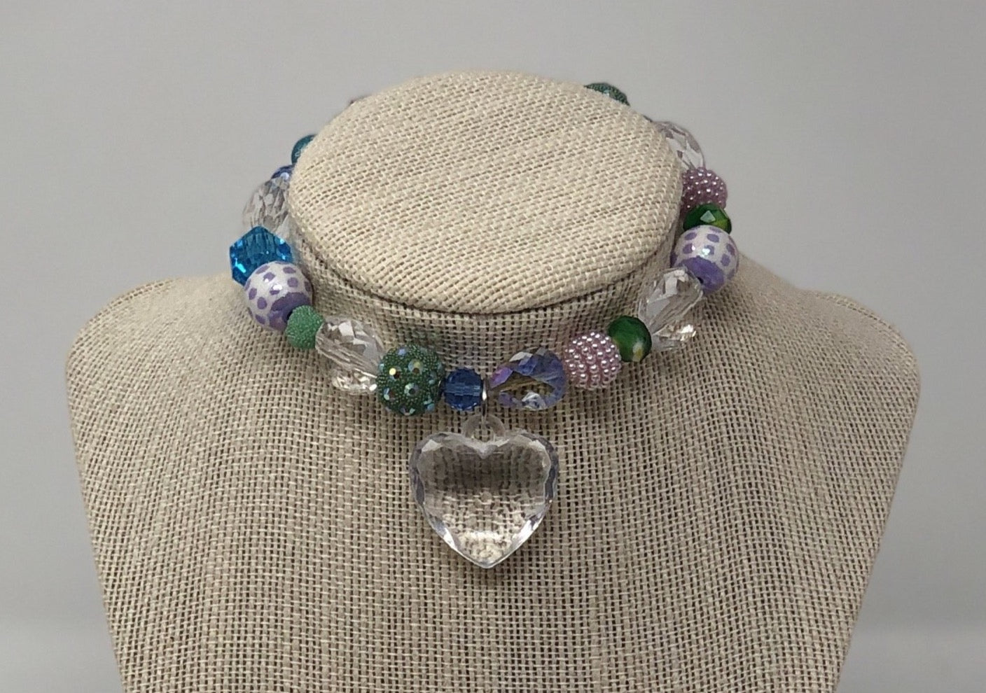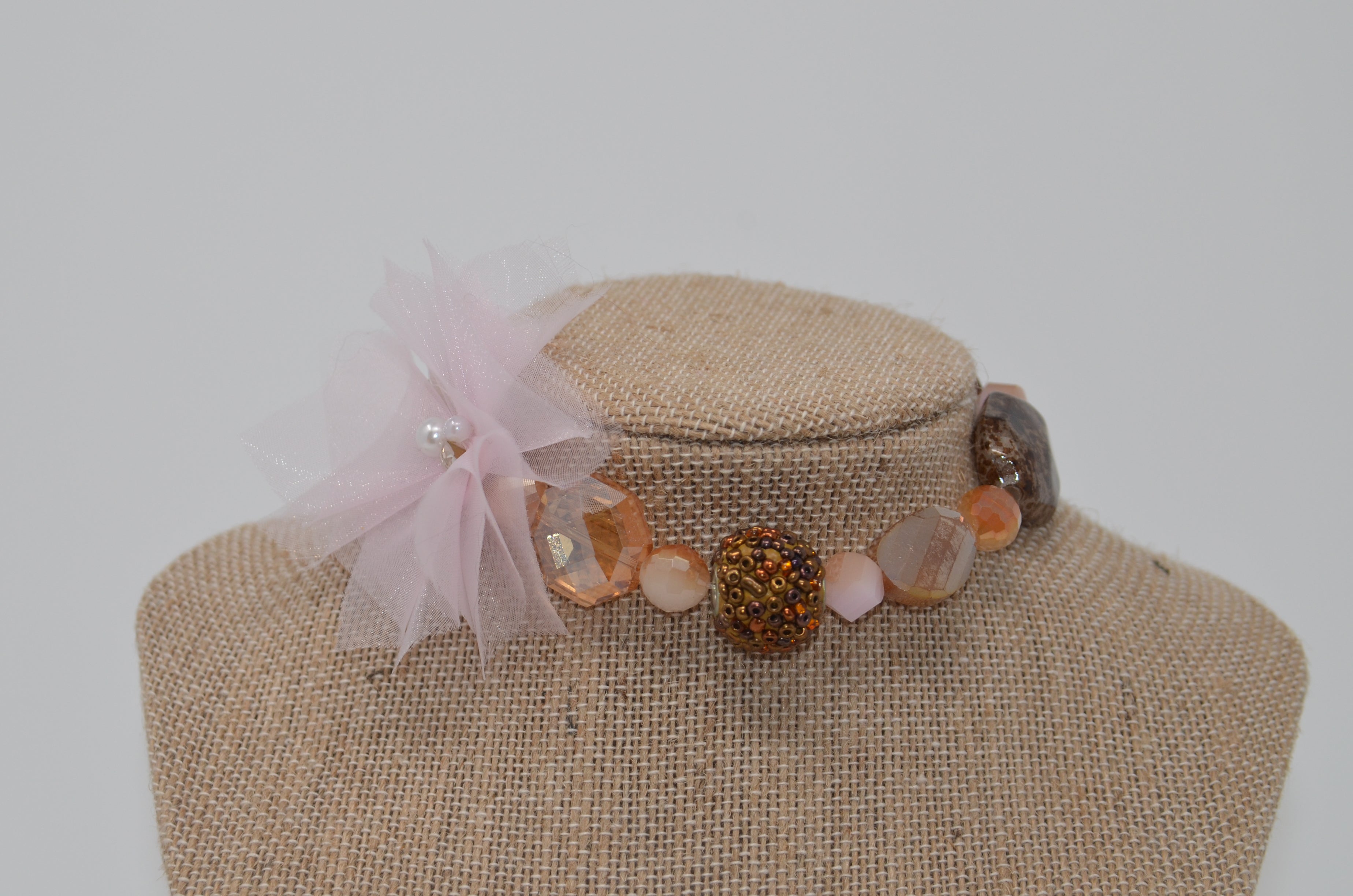 Each necklace is a handcrafted original made with lightweight and acrylic beads, rayon, and polyester materials.