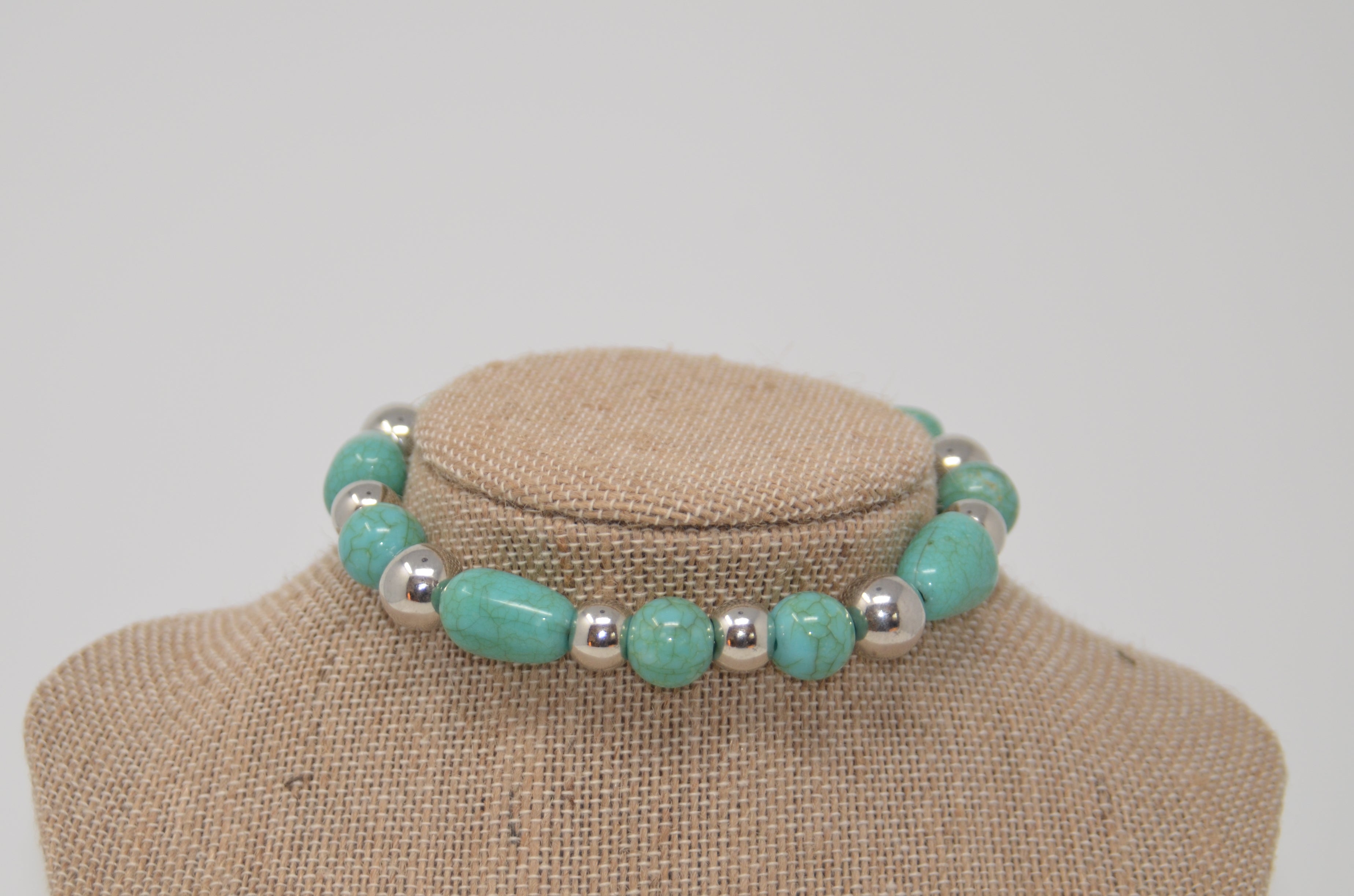 This necklace is stretchable and meant to be worn loosely, not as a collar.